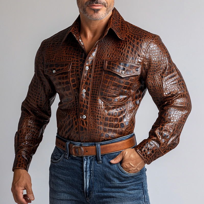 Men’'s Casual Fur Lapel Collar Graphic Pattern Long Sleeve Coat