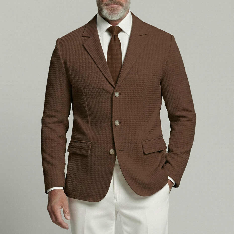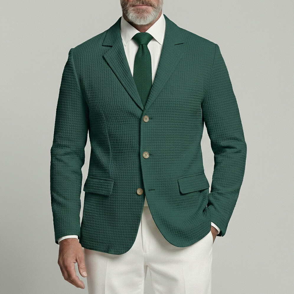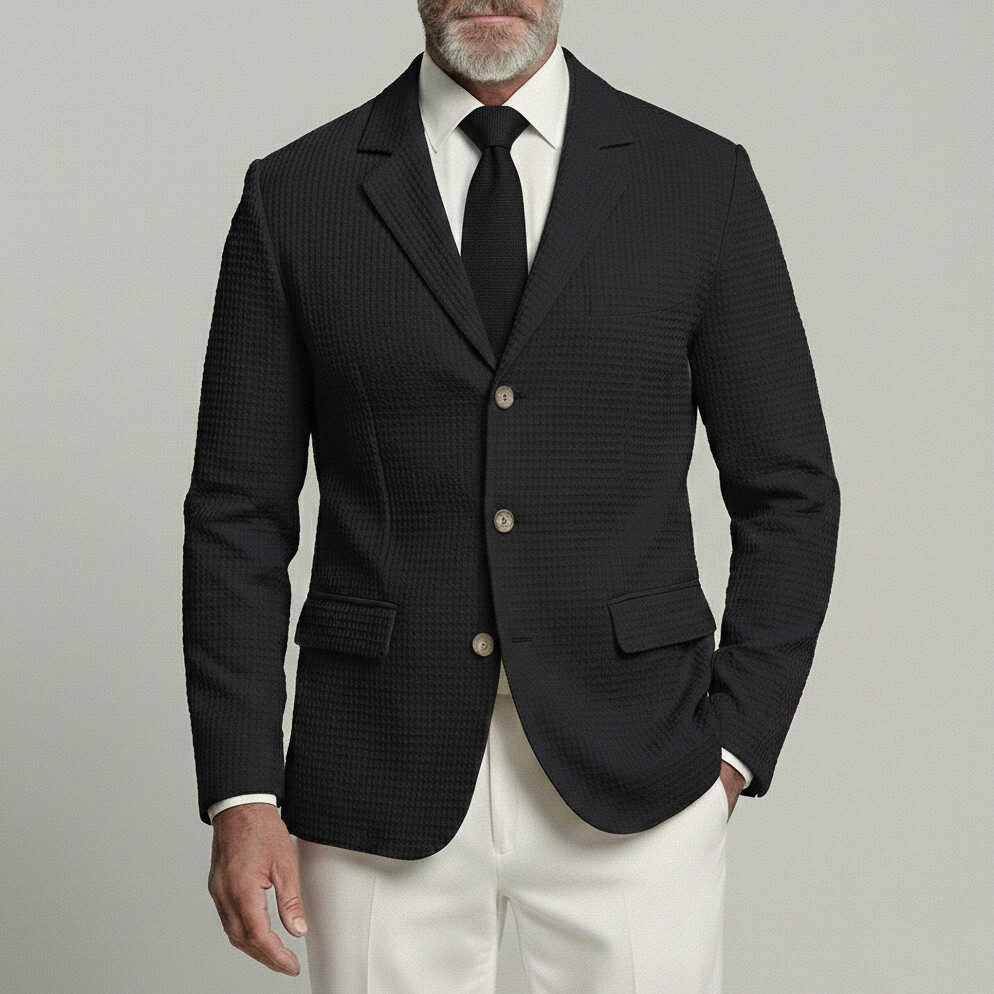 Men's Business Casual Waffle Notched Lapel Single Breasted Long Sleeve Blazer