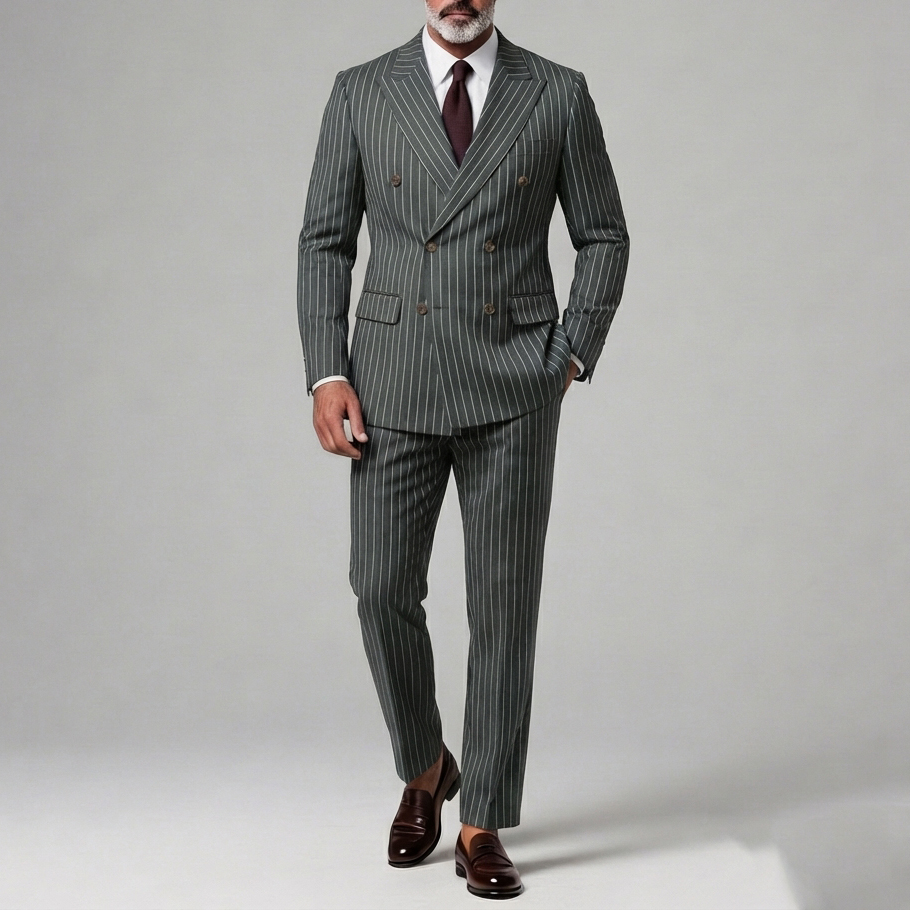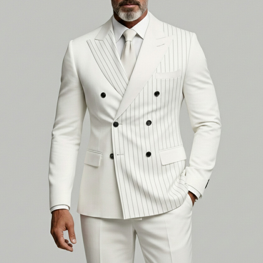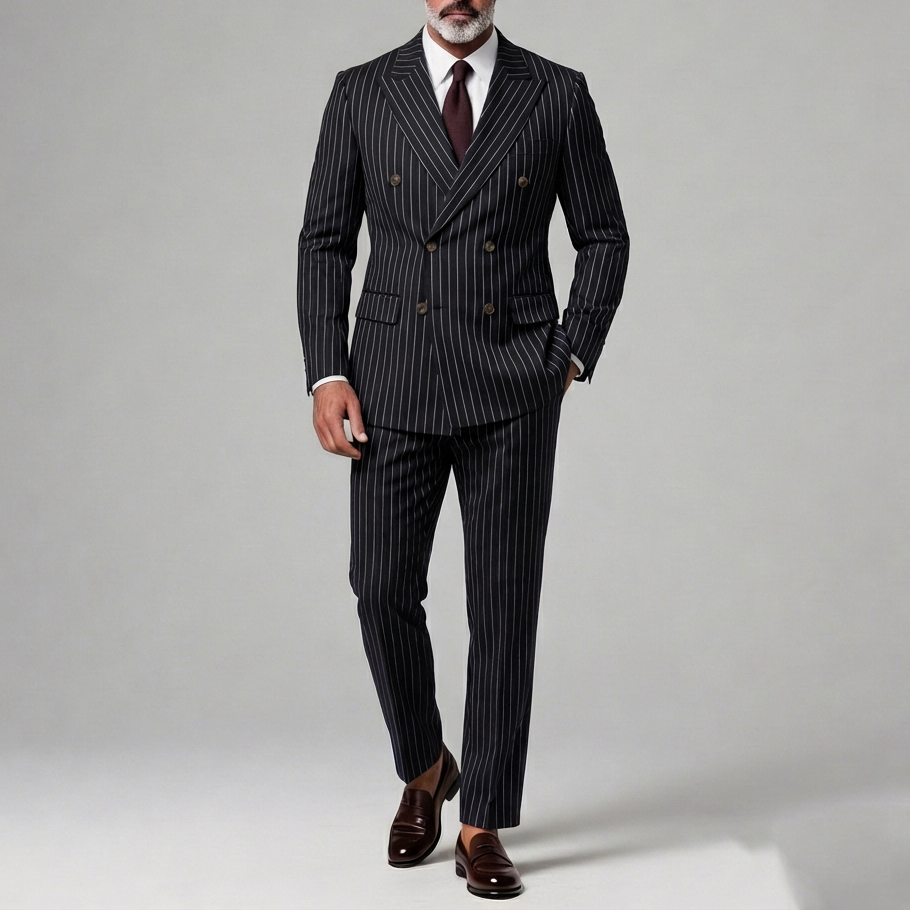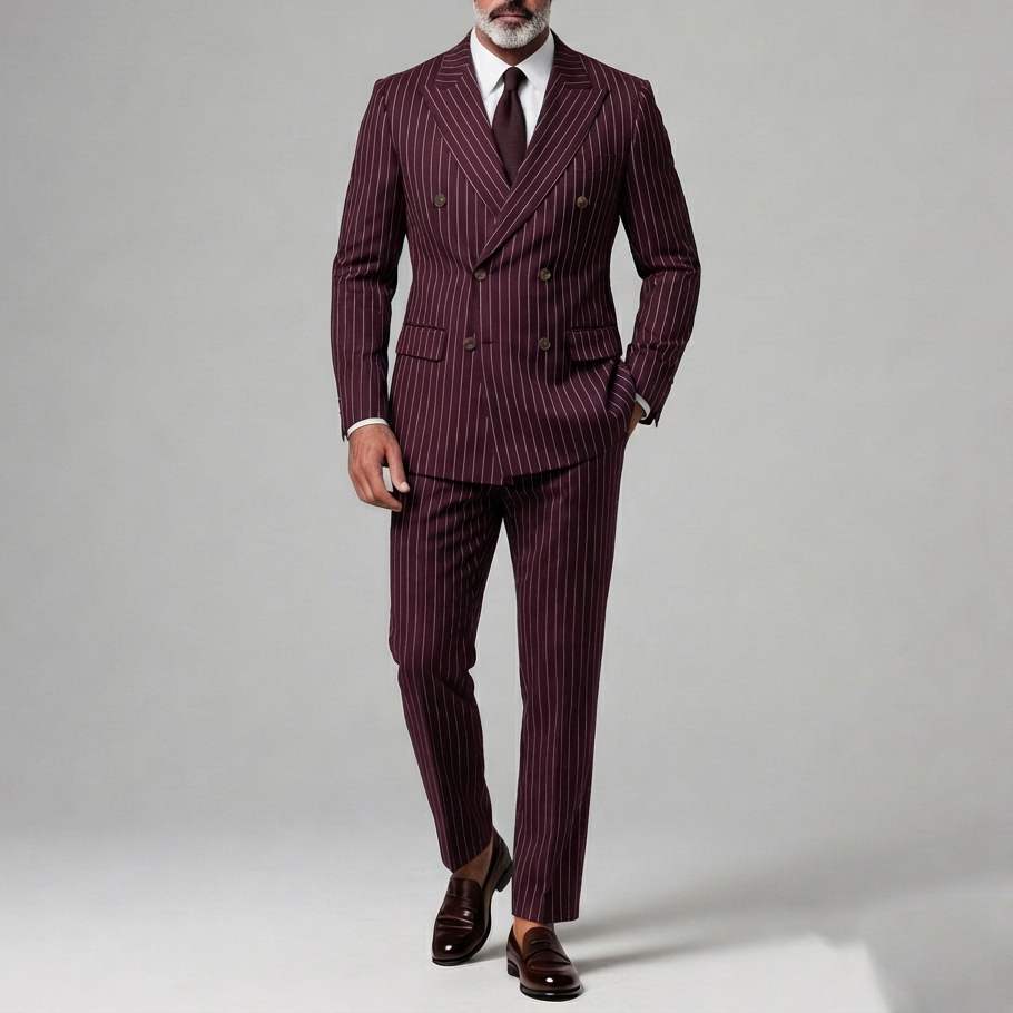 Men's Business Striped Peak Lapel Double Breasted Long Sleeve Blazer & Pants 2Pcs Set