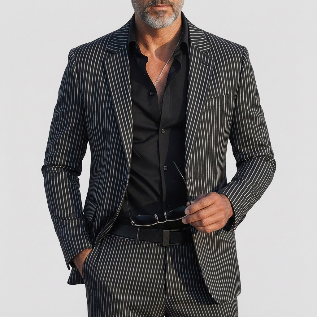 Men's Business Black Striped Notched Lapel One Button Long Sleeve Blazer