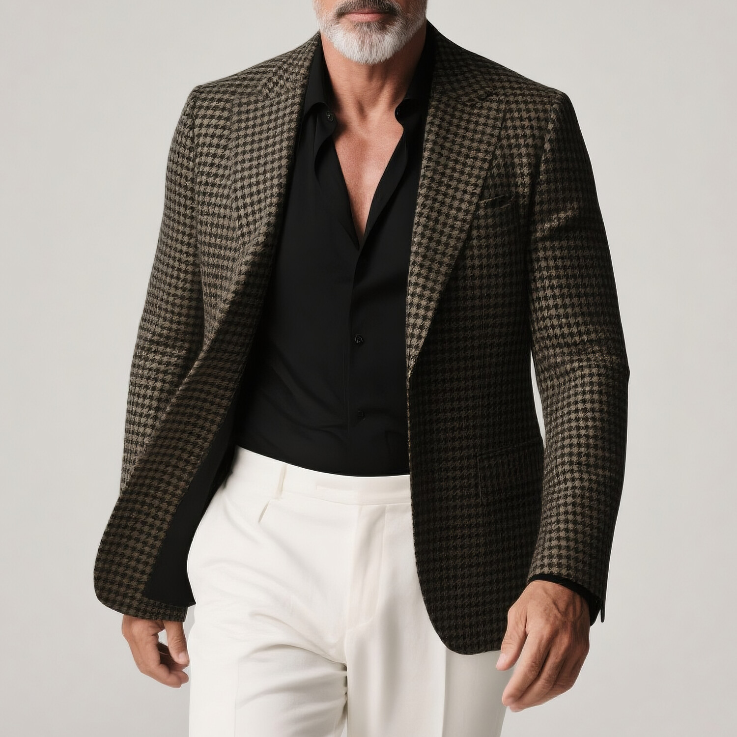 Men's Business Peak Lapel Long Sleeve Button Houndstooth Blazer