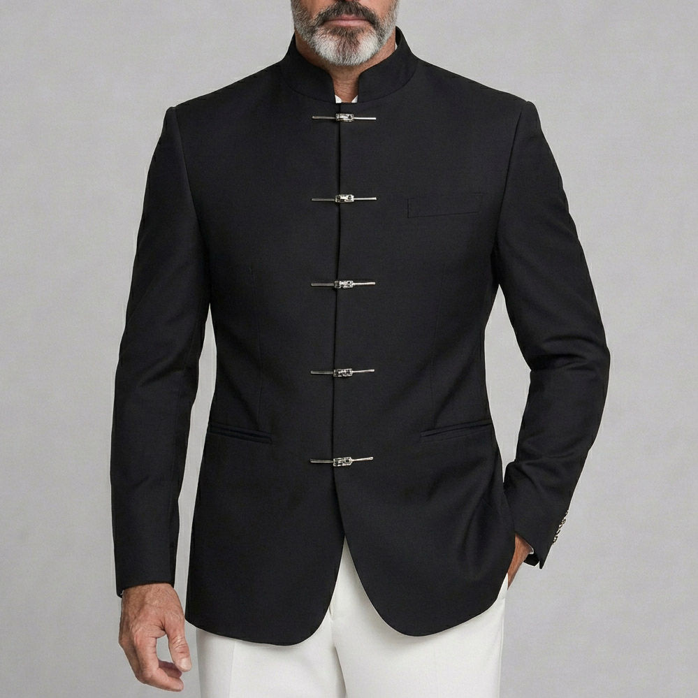 Men's Business Black Stand Collar Single Breasted Pocket Long Sleeve Blazer
