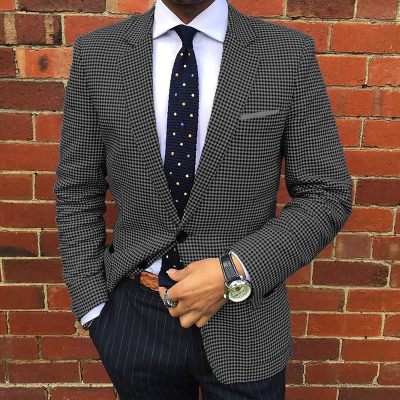 Men's Business Contrast Plaid Two Button Lapel Blazer