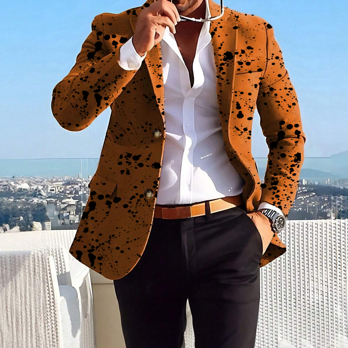 Men's Ink Dot Print Lapel Collar Two Button Blazer