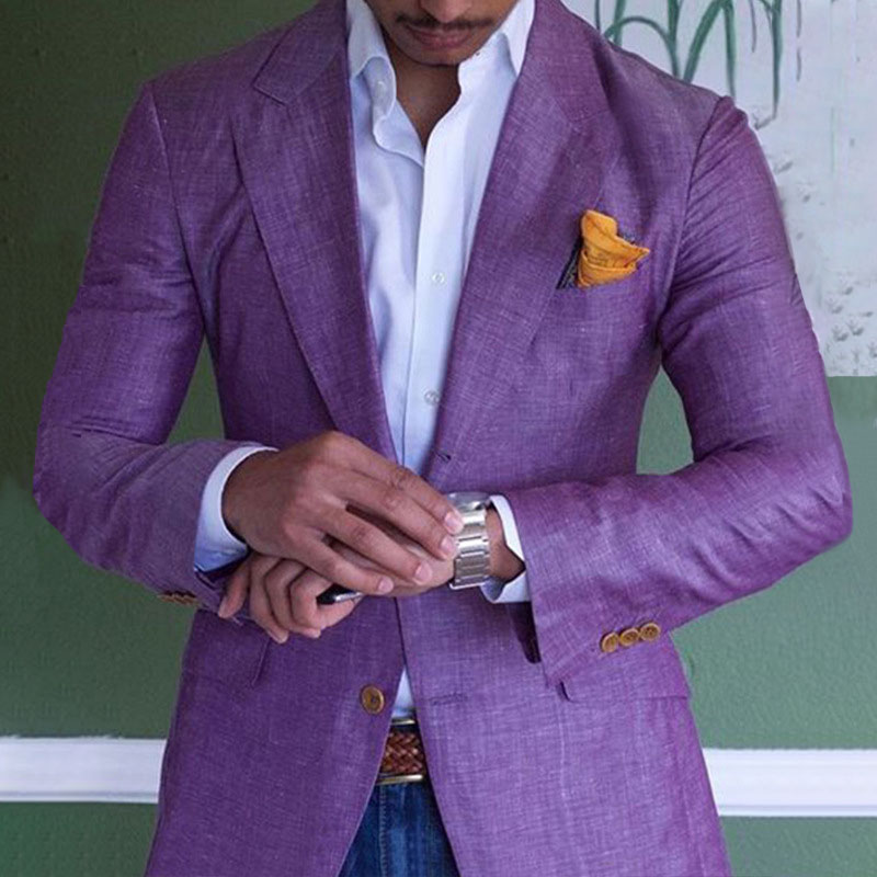 Men's Plain One Button Flap Pocket Notch Lapel Blazer