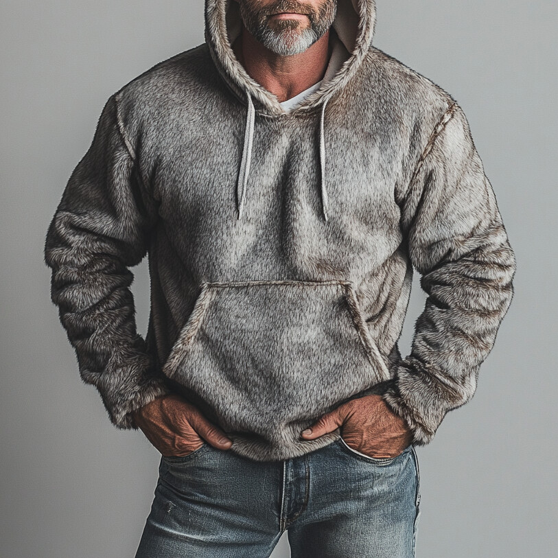 Men's Casual Drawstring Long Sleeve Pocket Plush Hoodie