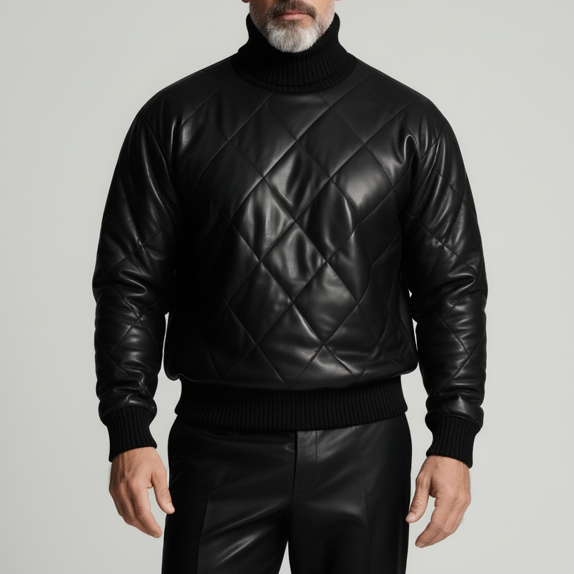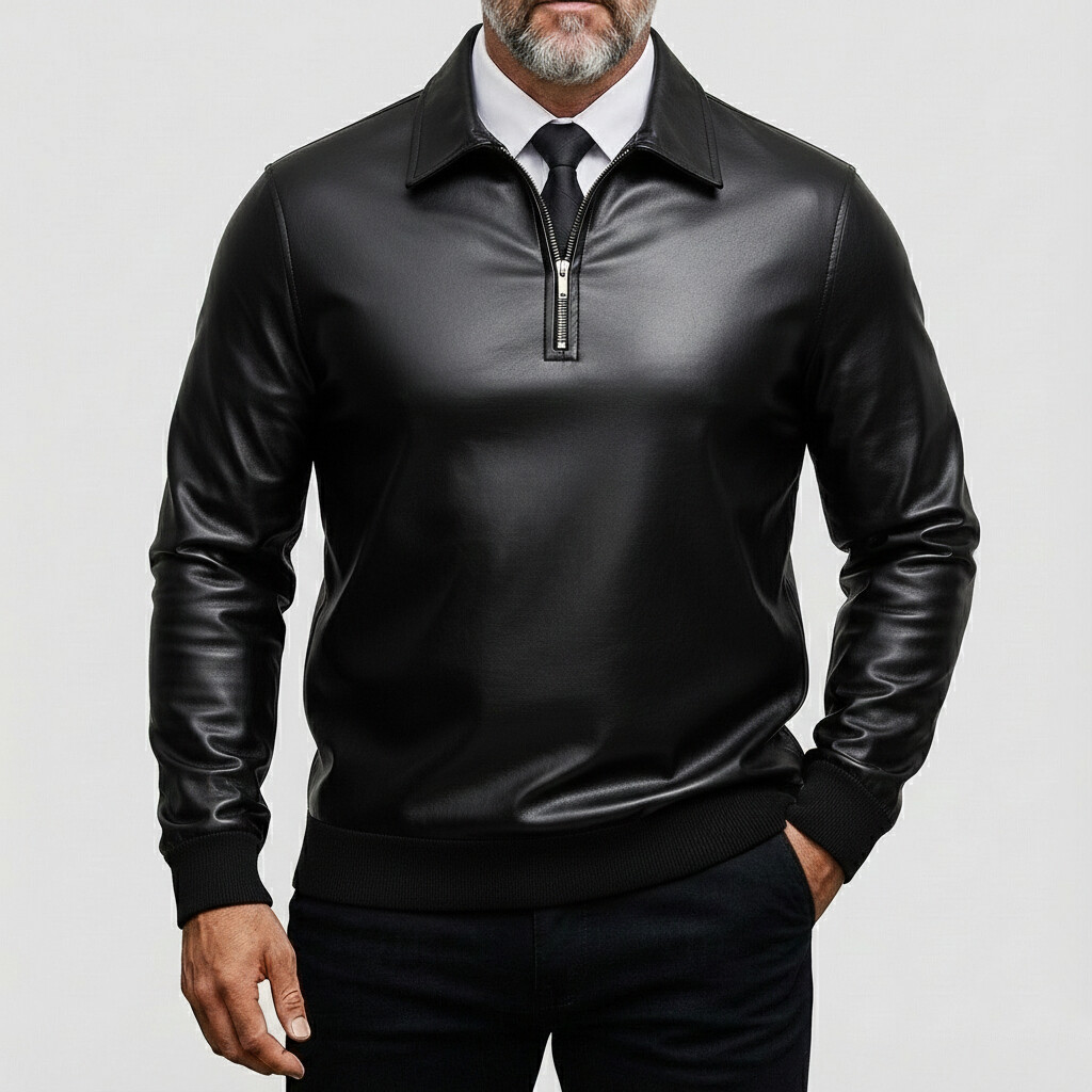Men's Patent PU Leather Half Zipper Sweatshirt