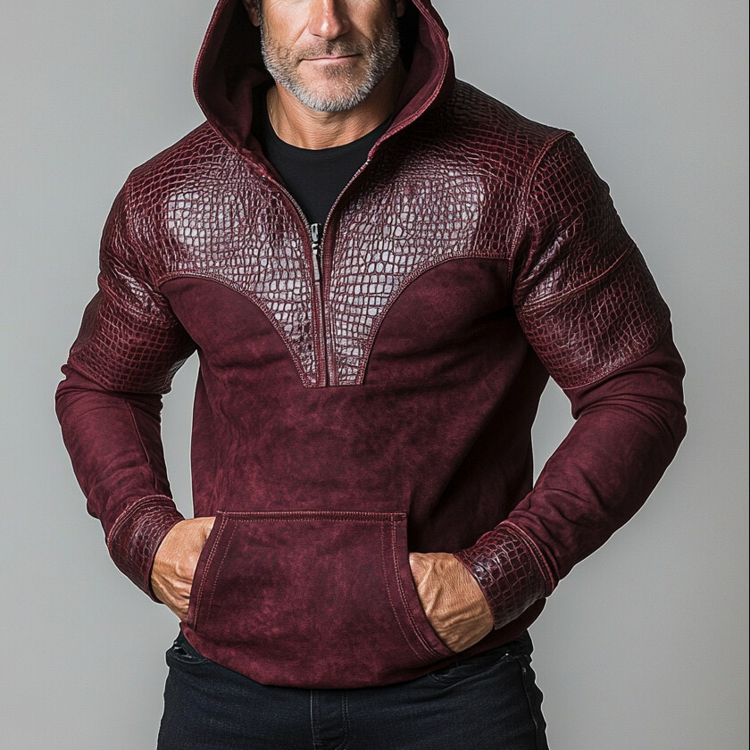 Men's Suede PU Leather Patchwork Long Sleeve Hoodie