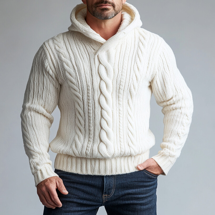 Men's Casual Cable Knit Long Sleeve Hoodie