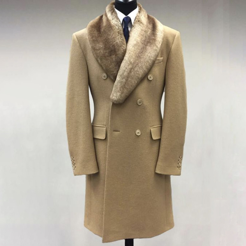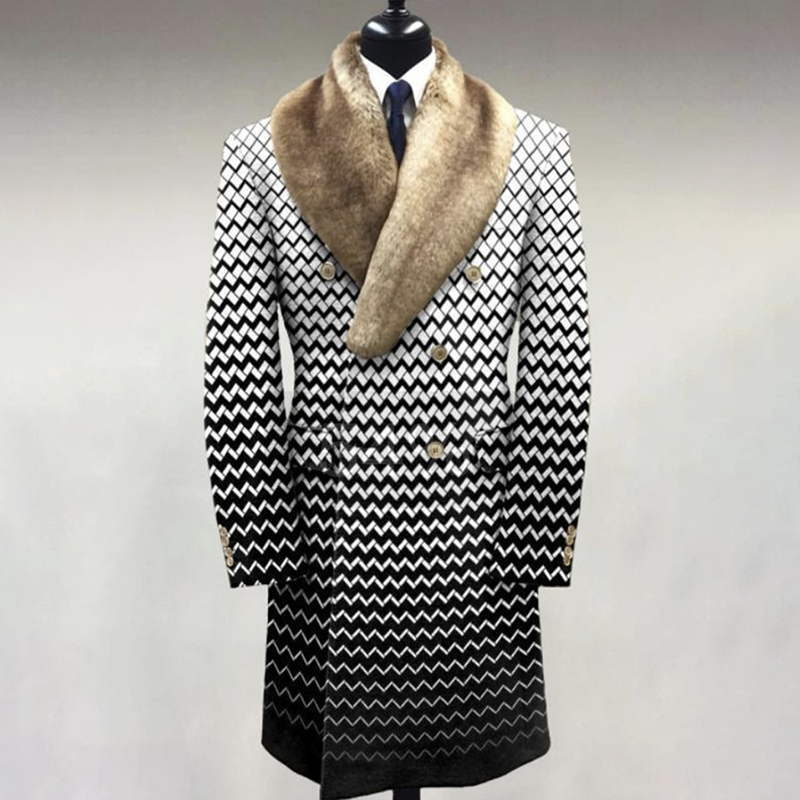 Men’'s Casual Fur Lapel Collar Graphic Pattern Long Sleeve Coat