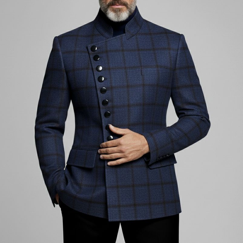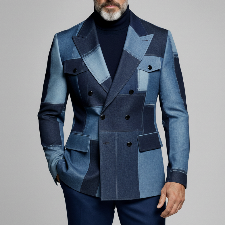 Men's Business Denim Notch Lapel Buttons Flap Pocket Blazer