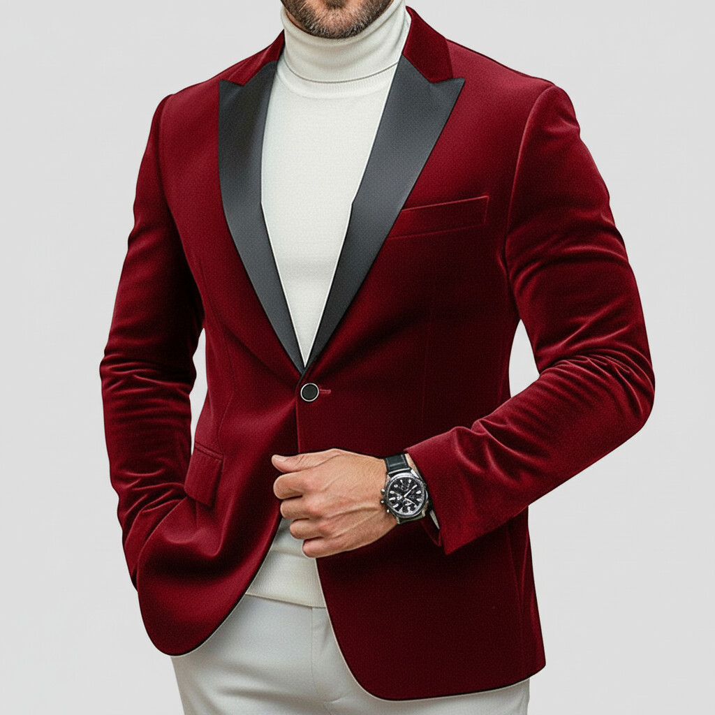 Men's Business Velvet Peak Lapel One Button Long Sleeve Blazers
