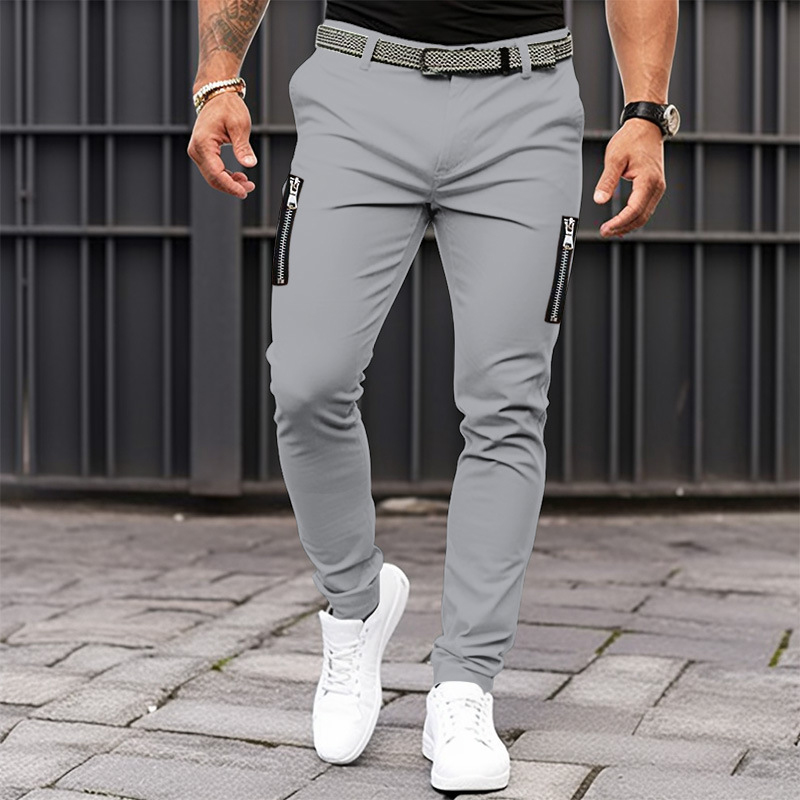 Men's Casual Slim Fit Side Zipper Pockets Pants