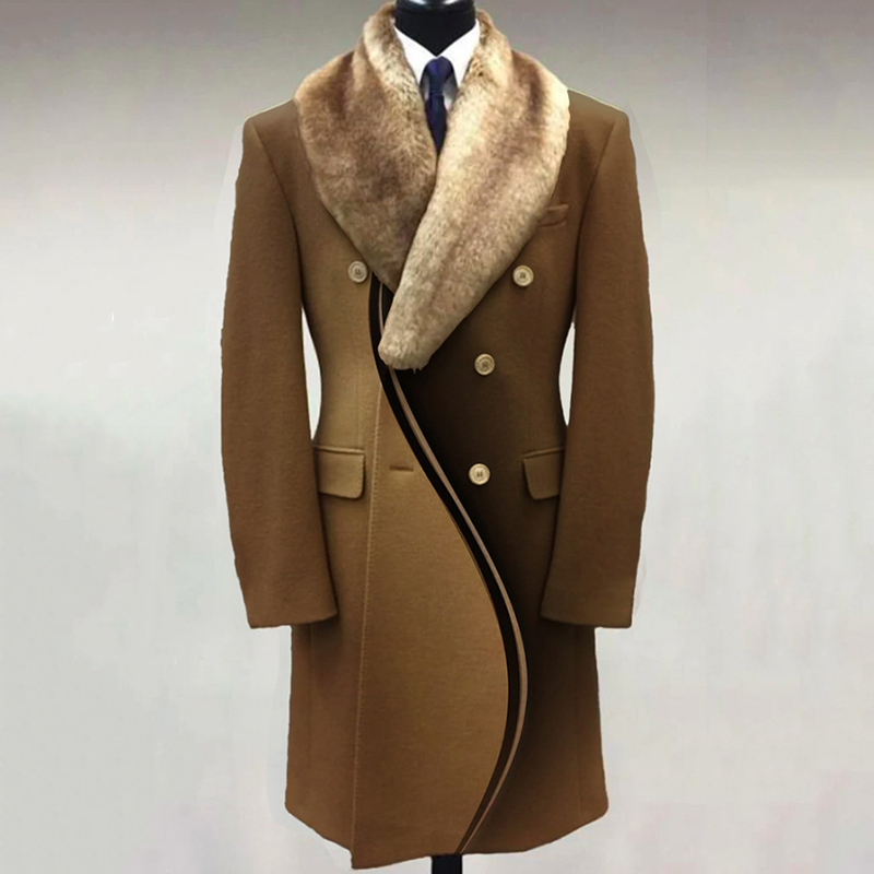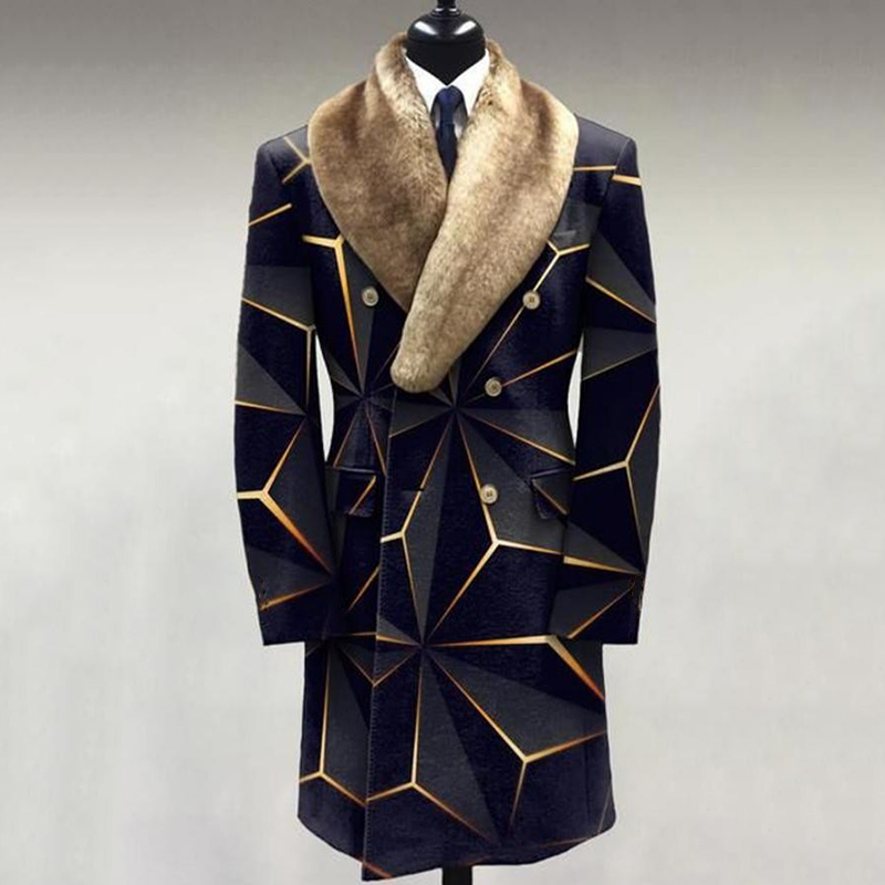 Casual Fur Lapel Collar Graphic Pattern Long Sleeve Coat